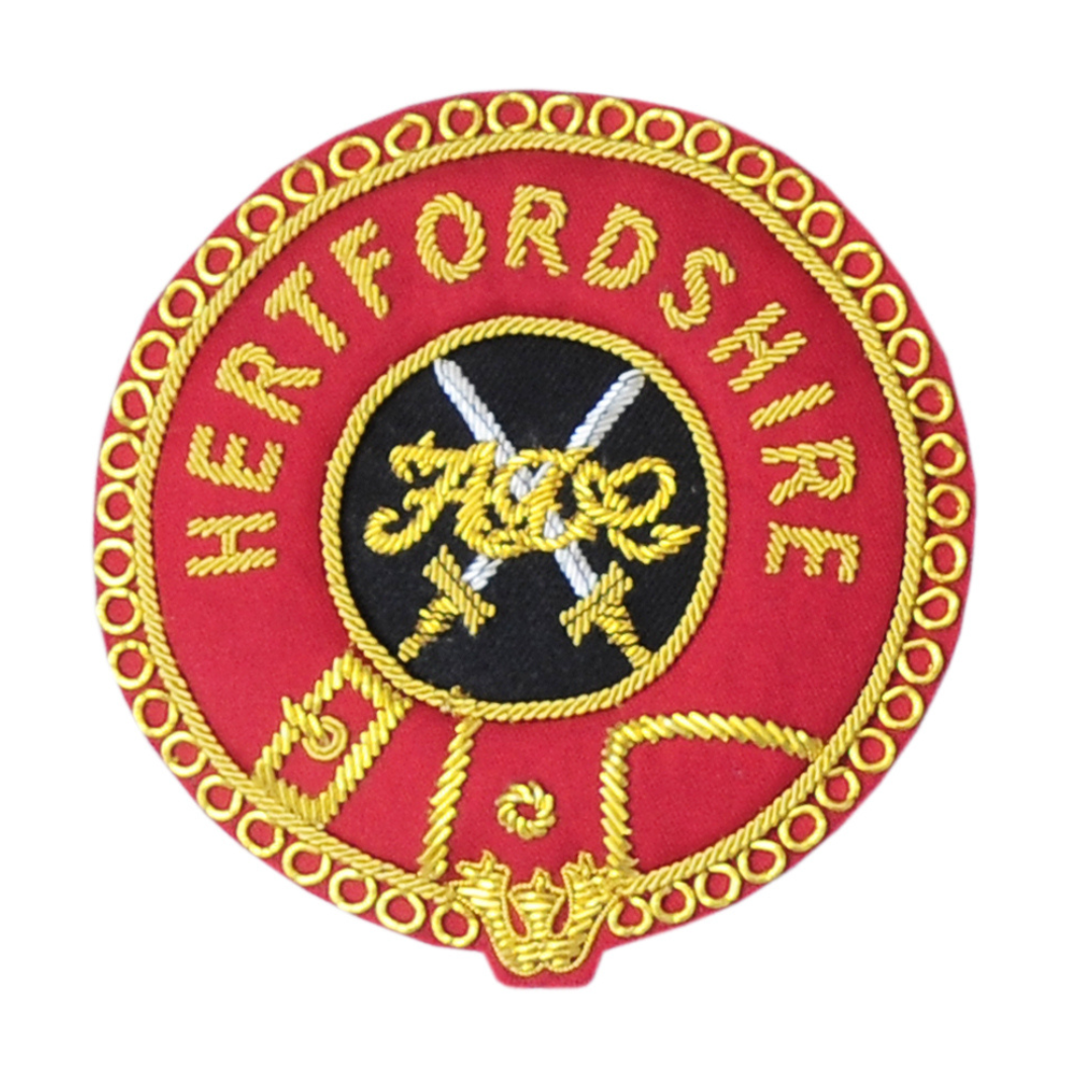 This finest quality badge is manufactured hand embroidered with golden wire bullion. The size of the badge is 12 cm diameter.